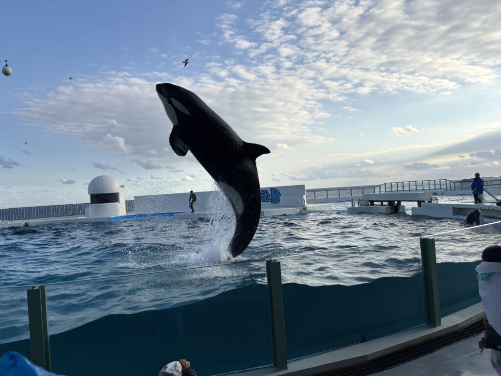 鴨川シーワールドではイルカやシャチの迫力満点なショーを子どもたちは目を輝かせながら見ました!🐬